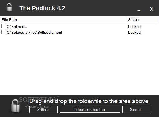 Позволяет защищать как целые папки, так и отдельные файлы. Просто придумайте надёжный пароль и перетащите в окно проги нужные элементы. Кстати, здесь можно добавлять сразу по несколько файлов/папок за один раз. Все запароленные элементы также будут защищены от удаления.