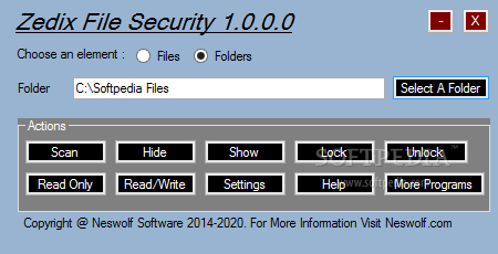 Тоже легковесная программа, но уже чуть с большим количеством кнопок на борту. Кроме самой блокировки вы сможете скрыть папки и файлы из их местоположения, сделать их доступными только для чтения или для чтения/записи.