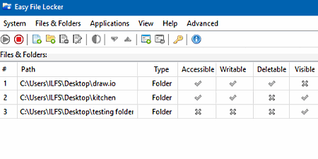Несмотря на название, эта софтина также позволяет ставить пароль и на папки. После того как вы добавите в неё нужные файлы/папки, вы сможете сделать их доступными, доступными для записи, удаляемыми и/или видимыми.