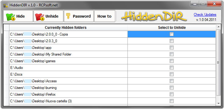 Аналог предыдущей программы, но работает только с папками. Всё максимально просто — чтобы добавить папку в список защищённых, жмёте Hide, чтобы вытащить её обратно, жмёте Unhide.