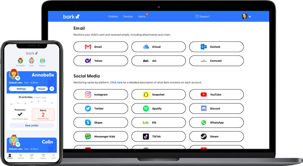 Bark разработан таким образом, что он сам следит за виртуальной активностью ваших детей, избавляя вас от нужды делать это вручную, не нарушая при этом право ребёнка на личное пространство.