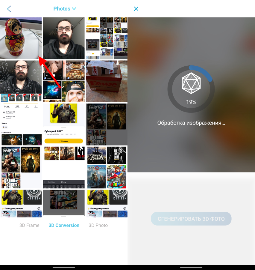 - конвертация обычных фото в 3D