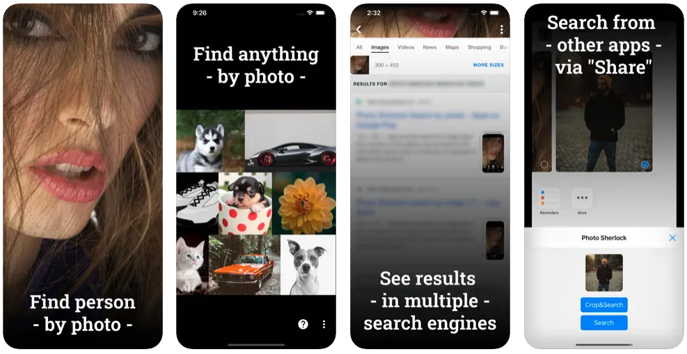 Позволяет загрузить фото из галереи вашего телефона и находить похожие через поисковые системы Google, Яндекс и Bing.