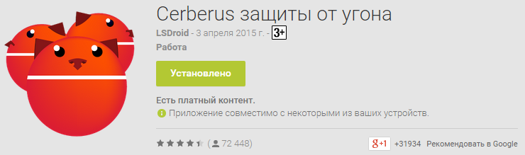 Cerberus - мощное антиугонное приложение для вашего смартфона. Функция приложения на часах очень проста. Когда ваш телефон "уходит" далеко от часов, вы получаете мгновенное сообщение. Кроме этого, вы можете с часов запустить поиск телефона или полностью заблокировать его.