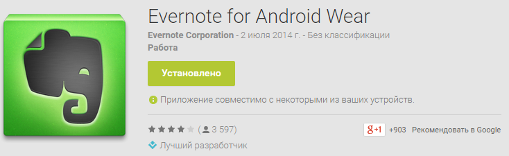 Экран Evernote на часах включает в себя всего четыре пункта (Recent notes нет на скриншоте):