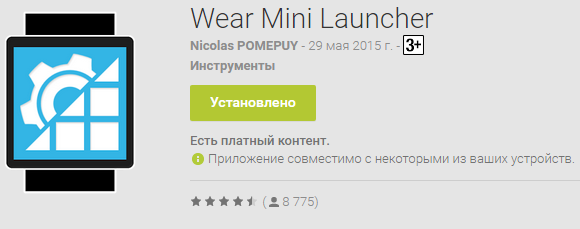 Стандартный лаунчер Android Wear не очень удобный. Wear Mini Launcher позволяет открыть доступ ко всем приложениям простым свайпом вправо.