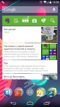 На своем телефоне я настроил виджет Evernote так, чтобы он отображал заметки по дате их изменения. Таким образом, когда я беру телефон в руки, то я сразу же вижу топ последних заметок, с которыми я работал. А раз я с ними работал, то именно они мне и нужны. Виджет можно добавить прямо на экран блокировки и получить еще более быстрый доступ к заметкам.