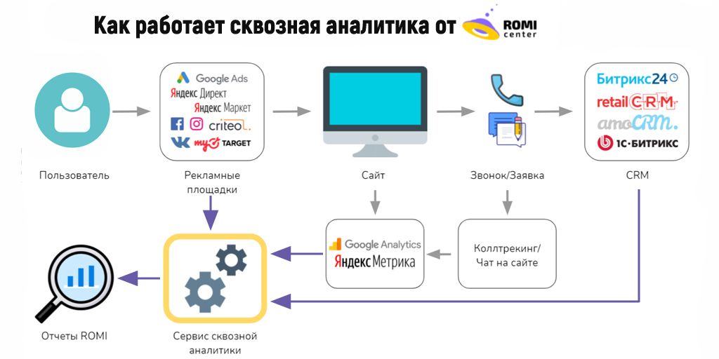 Чтобы работа со сквозной аналитикой была полноценной, потребуется 3 фактора: