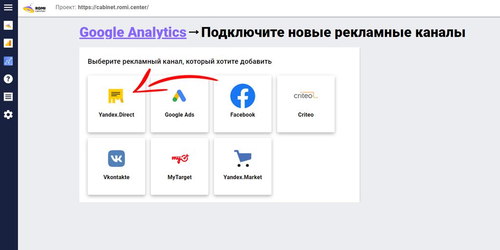 ROMI center предусмотрел возможность подключить больше 20 источников данных в системе сквозной аналитики. Среди них: