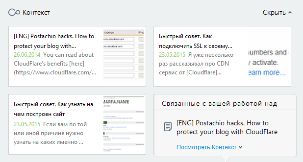 Функция достаточно полезная. Когда вы работаете над какой-то заметкой, внизу будет так называемый контекст: