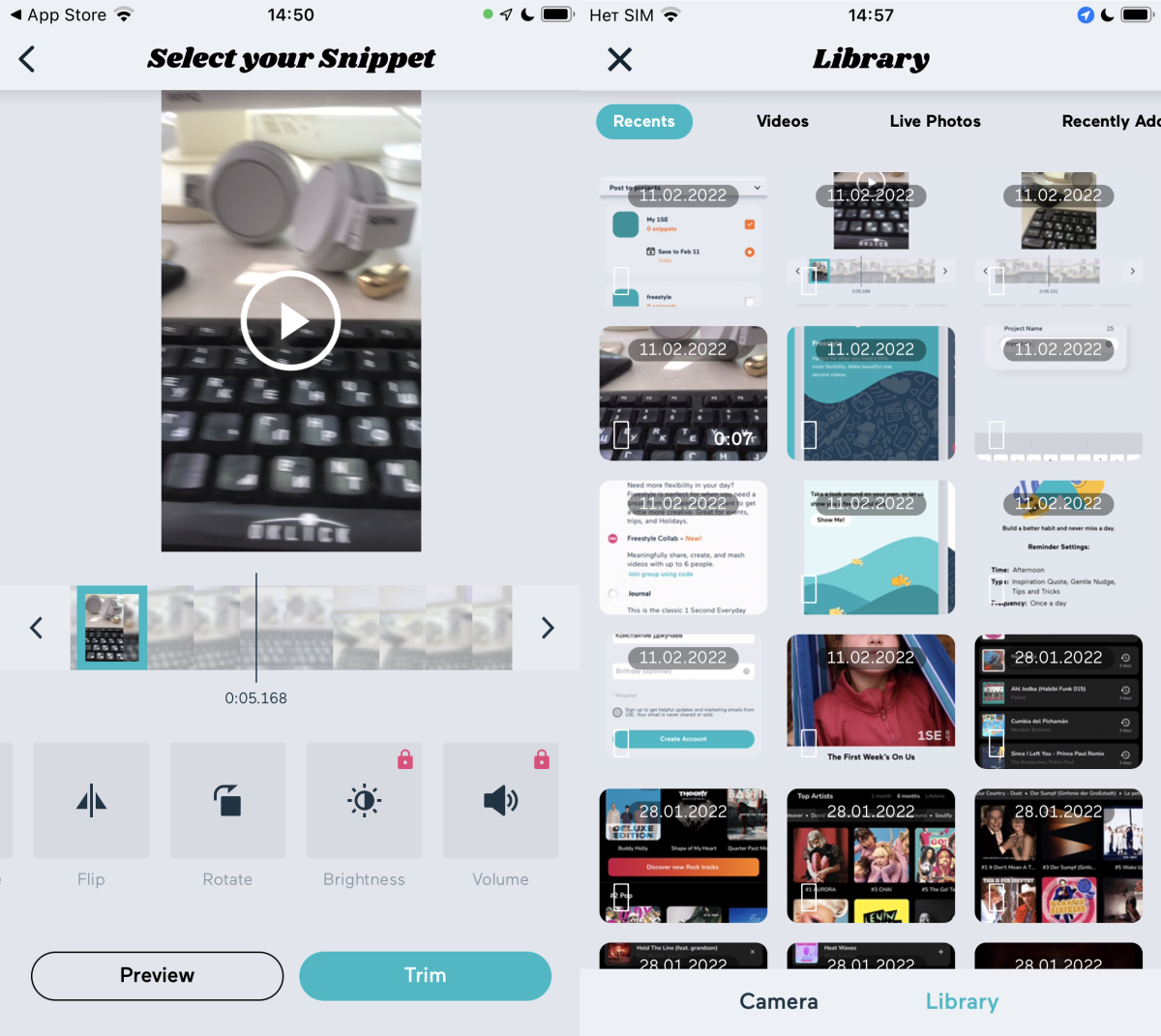 В процессе сохранения можно немного отредактировать видео: повернуть, отразить, изменить яркость и прочее. Либо выбрать видео из галереи смартфона.