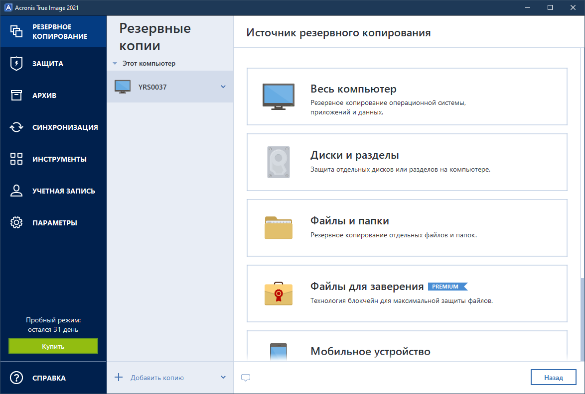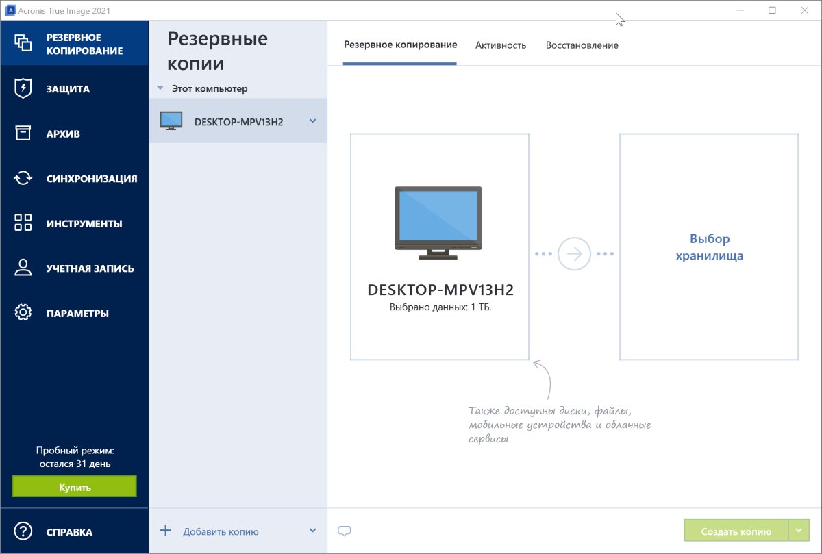 Попробовать Acronis True Image 2021