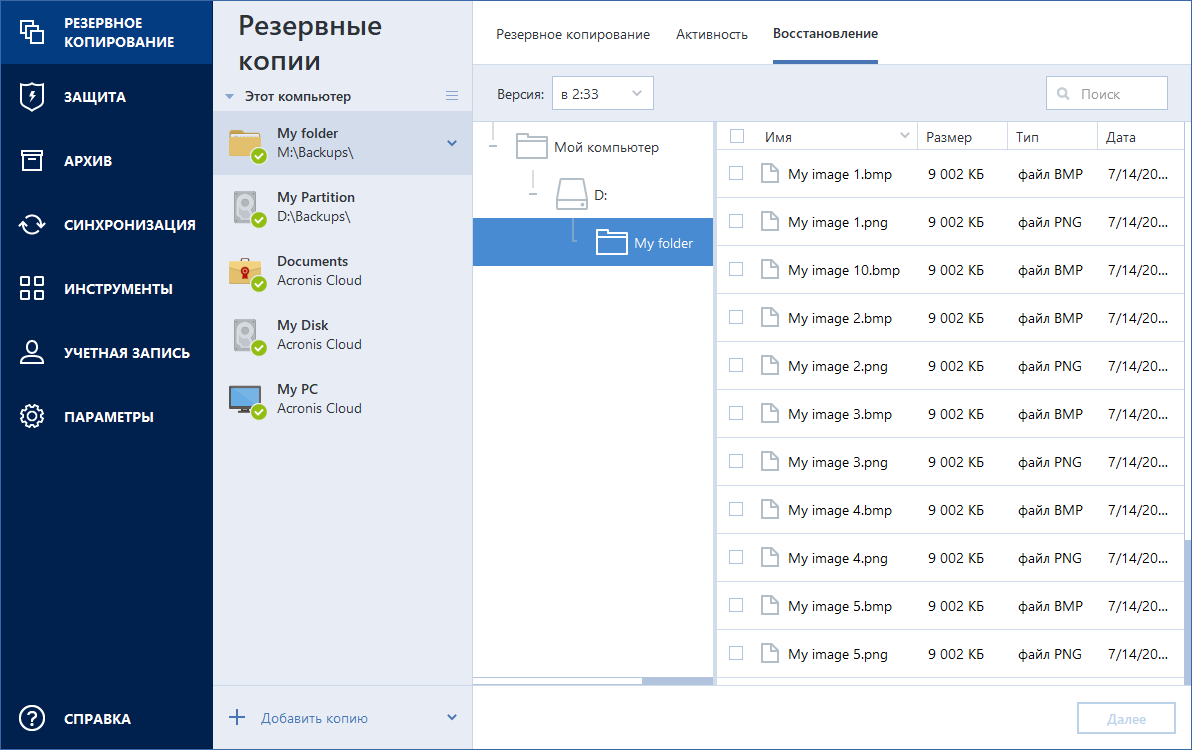 С помощью мастера Резервного копирования можно создать резервную копию всего компьютера, отдельных разделов и дисков, папок, данных с мобильных устройств, инфы из MS Outlook и OneDrive.