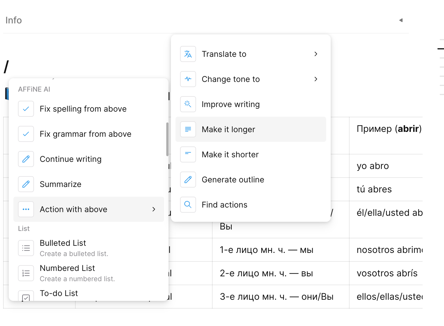 Как я писал в начале, в AFFiNE есть встроенный ИИ-помощник. Получить доступ к нему можно несколькими способами. Для работы с ИИ потребуется завести учётку в сервисе.