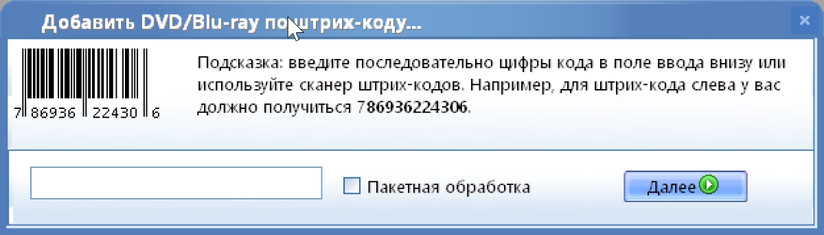 Если ваш фильм на физическом носителе, можно указать штрих-код с коробки или загрузить список кодов. Затем они все будут добавлены в ваш каталог.