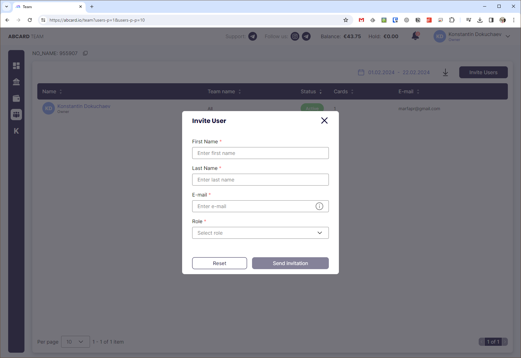 На этой странице можно просмотреть по отдельности ваши карты, карты всей команды и, соответственно, транзакции и коды по ним. При необходимости можно применить фильтр по статусу карты, её типу, имени, номеру и ID.