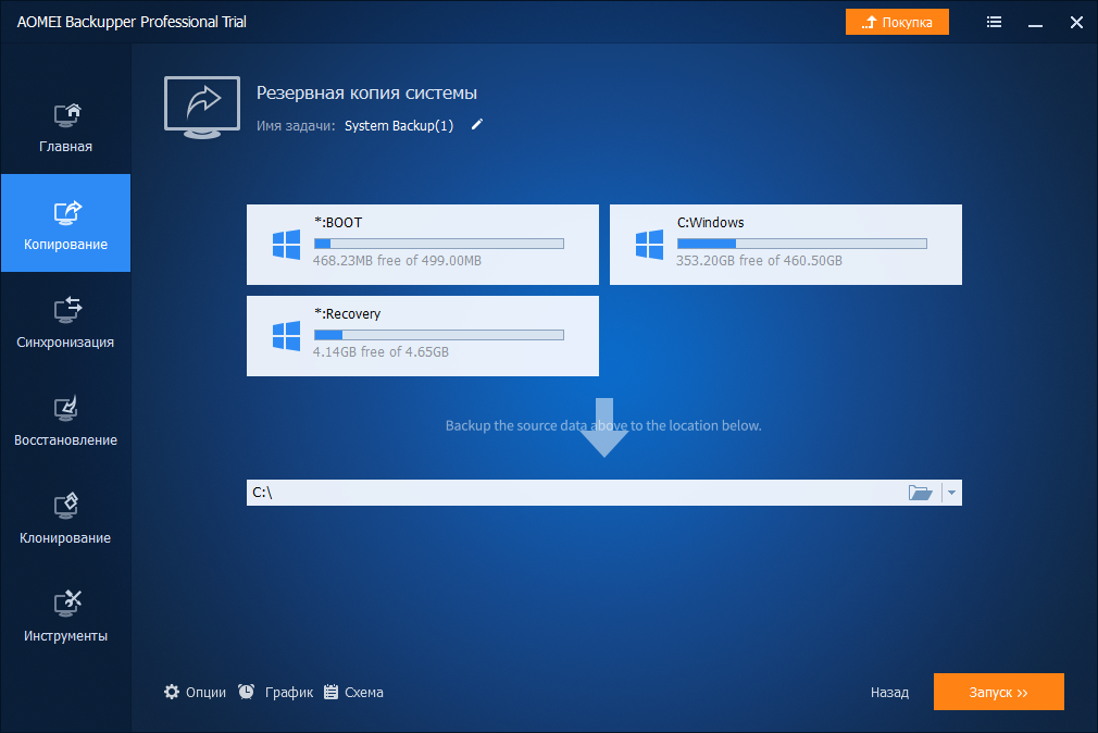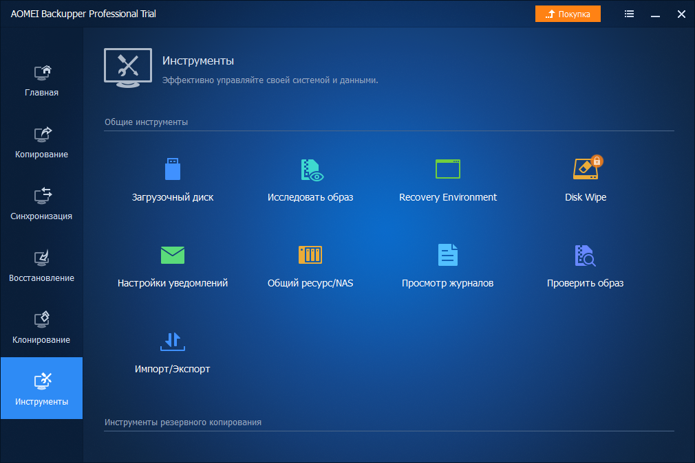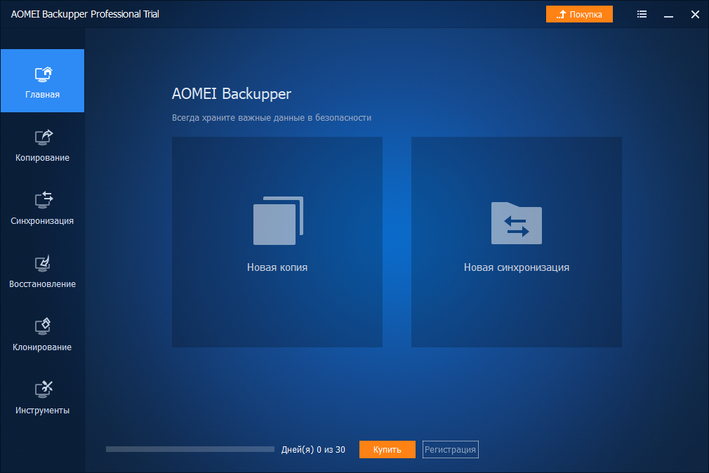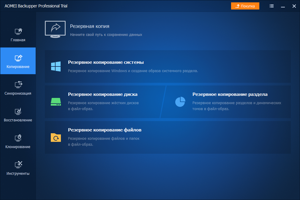 А теперь перейдём к самим возможностям AOMEI Backupper.