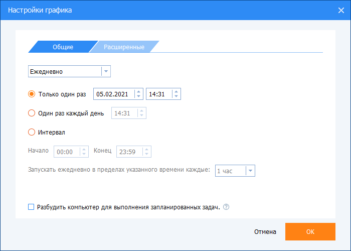 Для задачи можно настроить график её выполнения. Бэкапы можно запускать по расписанию в необходимые вам дни. На вкладке Расширенные задаётся тип бэкапа: полная копия, инкрементная или дифференциальная.