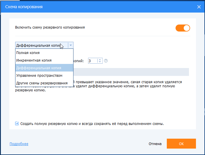 AOMEI Backupper предлагает как простые варианты бэкапа (вроде простого резервного копирования файлов и системы), так и продвинутые инкрементальные копии, схемы и даже шифрованные бэкапы.