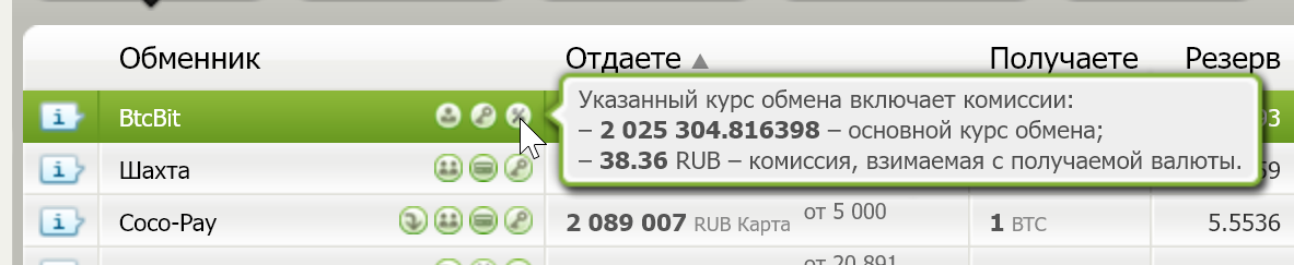 Любой из обменников в сервисе проверен администрацией, а после добавления его благонадёжность постоянно проверяется. Дополнительно рядом с некоторыми обменниками можно найти иконку верификации дополнительной проверки и наличия официальной юридической регистрации.