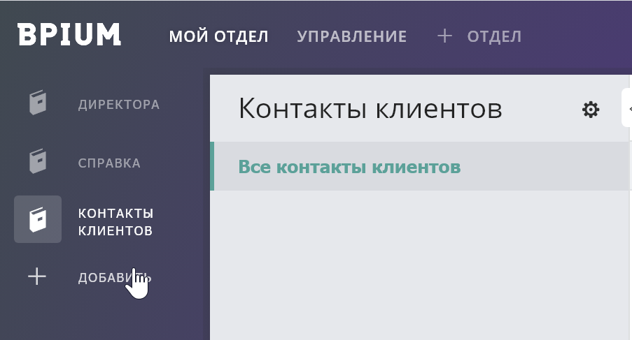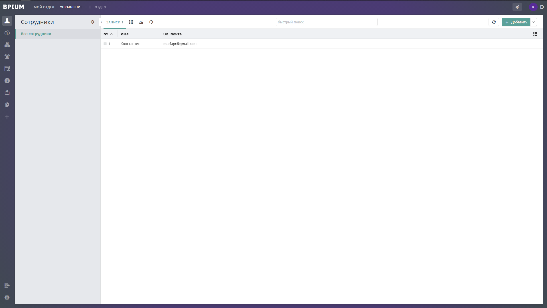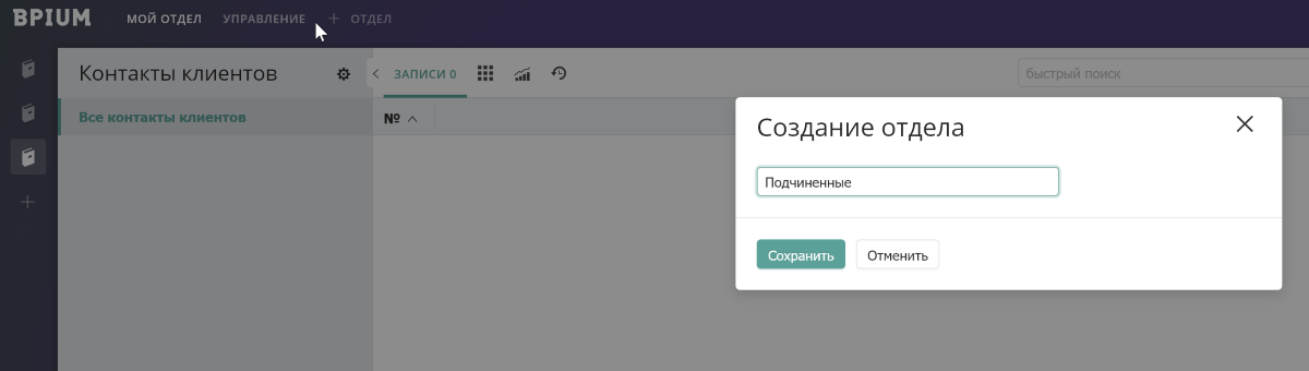 Первым делом нажмите кнопку «+Отдел». Это нужно для объединения работы разных отделов в компании в одной системе.