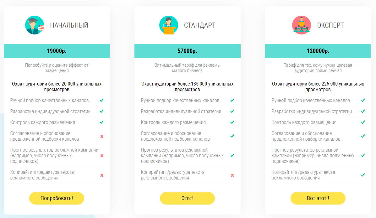Если вы, как и я, не хотите вообще ни о чём думать, а просто дать денег, в Telega.in есть пакетное размещение.