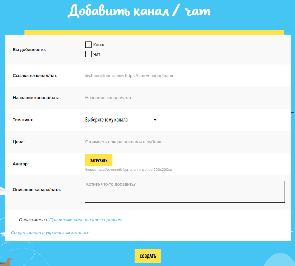 На самом деле тут почти нечего рассказывать. Вся работа ведётся максимально просто. После регистрации вам нужно добавить на биржу свои каналы и чаты из Telegram (да, можно чаты) с указанием стоимости поста, а затем просто ожидать заказов.