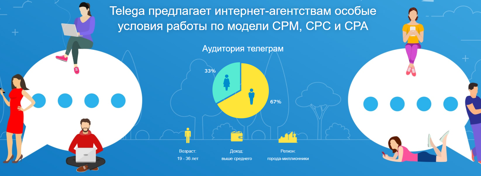 Для агентств также есть особые условия работы. Если вы хотите работать по CPM, CPC или CPA, биржа поможет в этом.