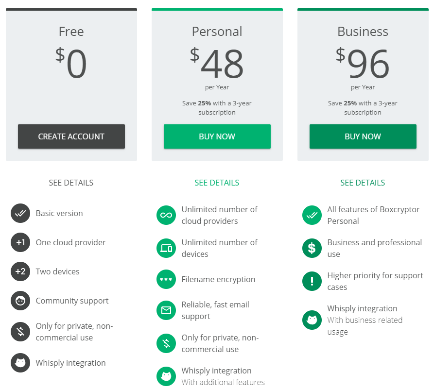 Платная версия для домашних пользователей стоит $48 в год и снимает все ограничения. А также добавляет шифрование имён файлов.