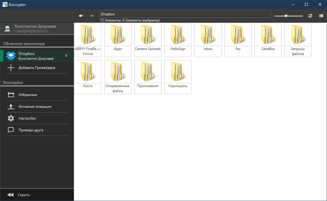 При выборе провайдера нужно будет пройти процедуру авторизации уже в его сервисе. Я добавил Dropbox, после чего в окне Boxcryptor появились мои папки из облачного хранилища.