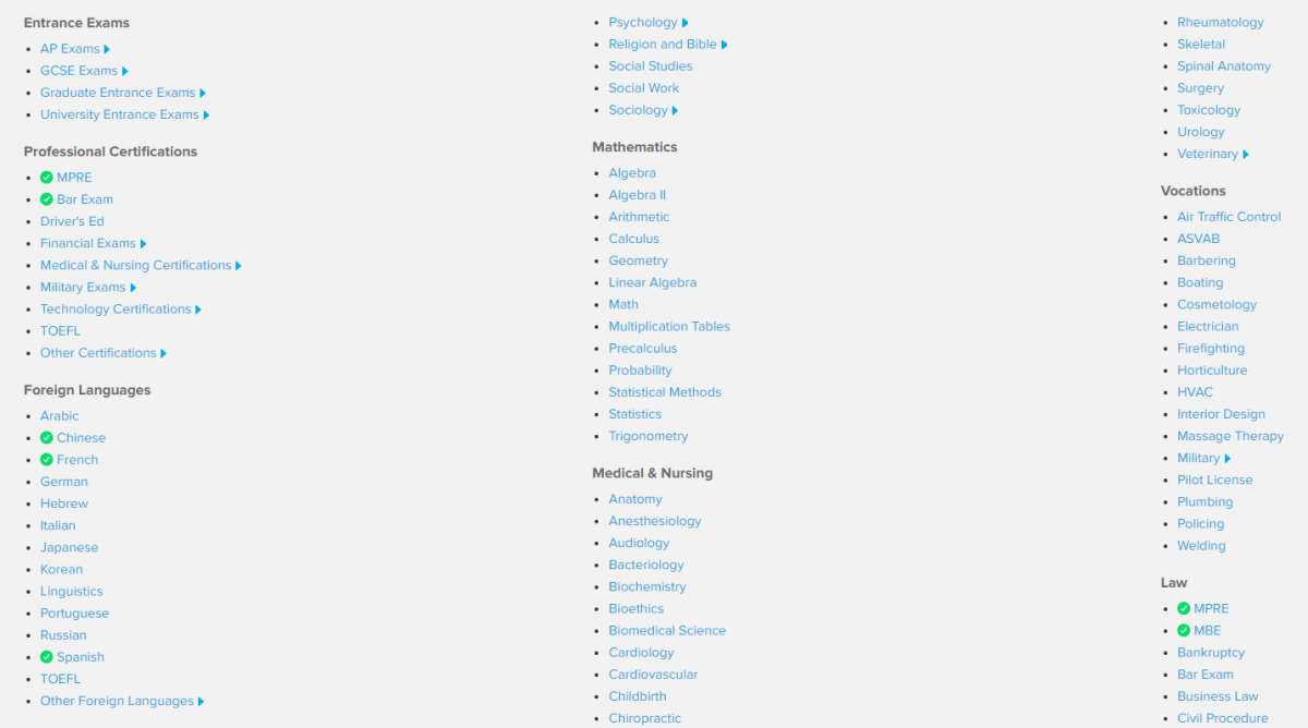 В веб-версии и в мобильном приложении есть меню Find Flashcards. Здесь можно найти карточки практически по любой тематике. Тем более одного миллиона, и вот часть этого списка.