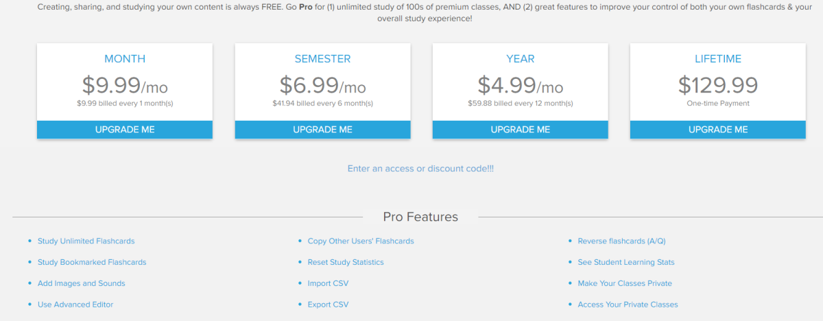 Учителям не будет доступен продвинутый редактор карт, копирование и экспорт карт, сброс статистики, реверсивные карты (сначала показывают ответ, а потом — вопрос), закрытые курсы.