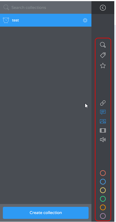 Коллекции создаются легко: выбираем иконку, название и добавляем описание.