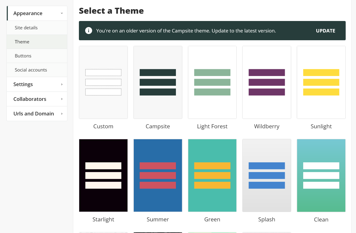 В разделе Appearance можно настроить внешний вид вашей страницы: стиль, кнопки, социальные сети. Как и настроить множество «подкапотных» параметров: описание страницы, совместную работу или привязку к собственному домену.