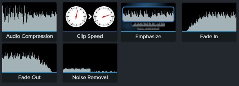 Как и в случае с видео, Camtasia даёт возможность использования различных аудиоэффектов. Всего их шесть типов: