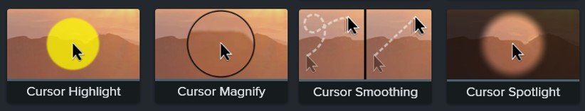 При добавлении этого вида эффекта вы сможете визуально выделить курсор в кадре. Всего есть четыре варианта: