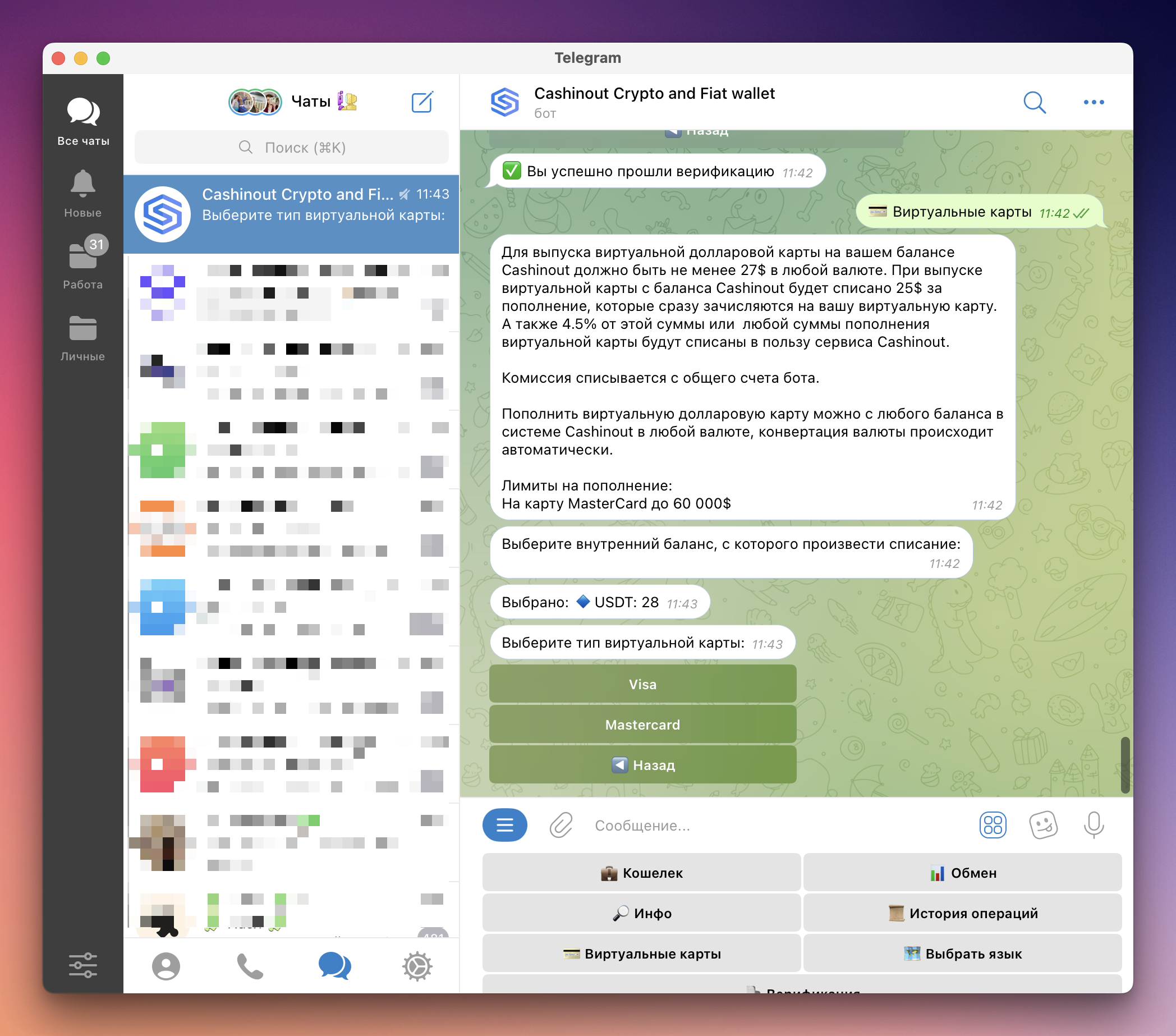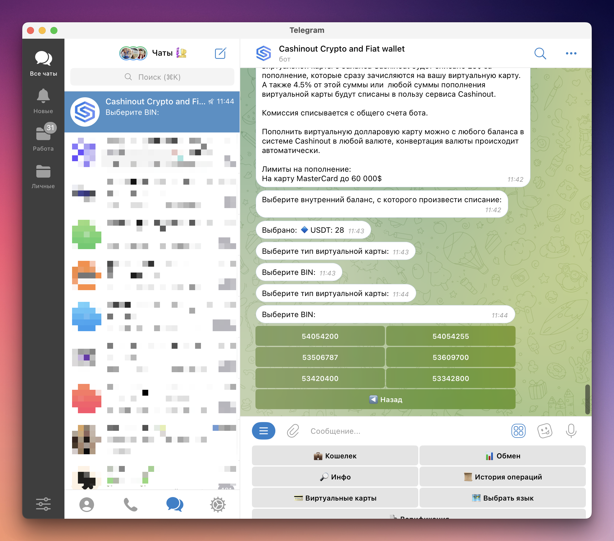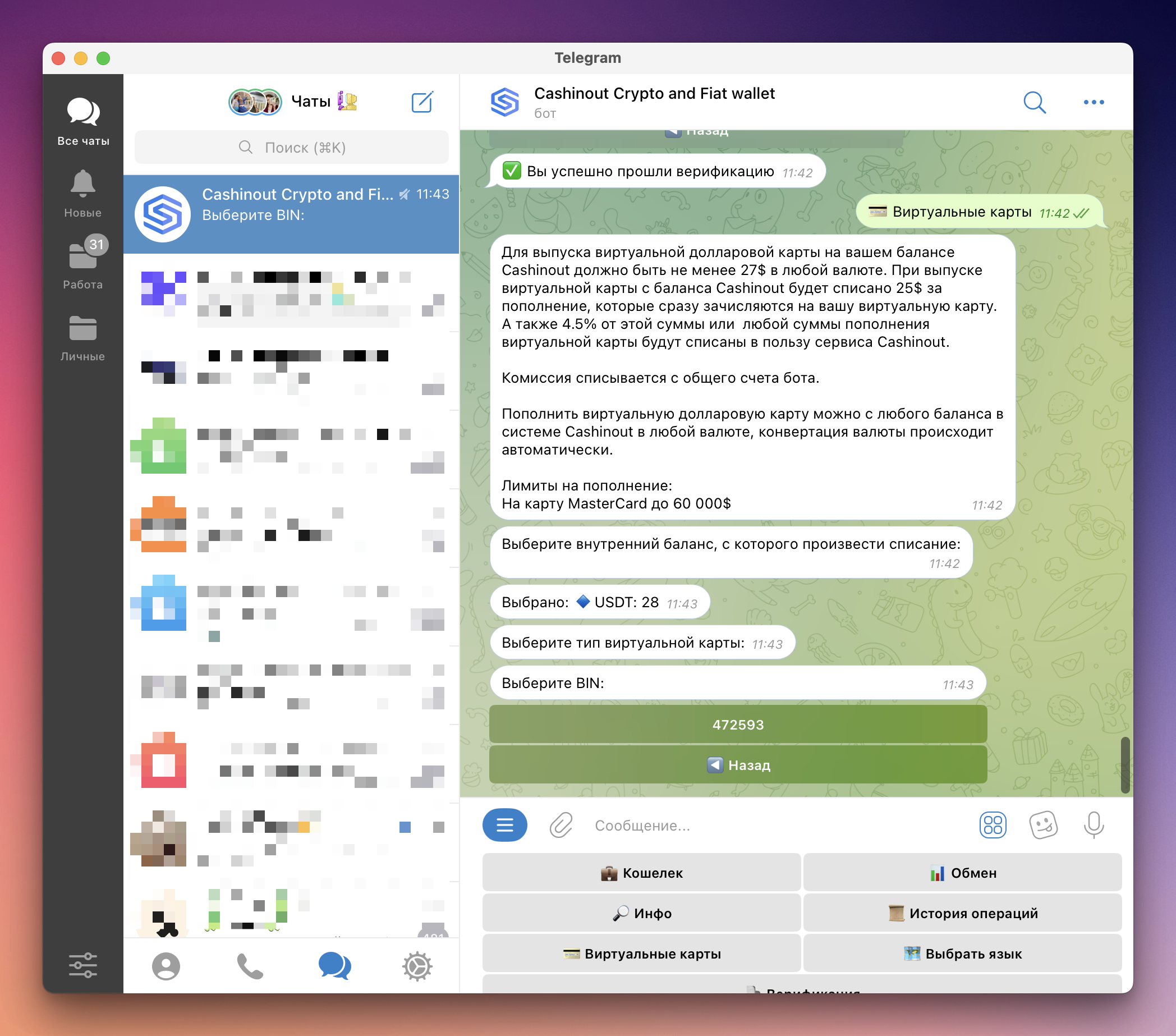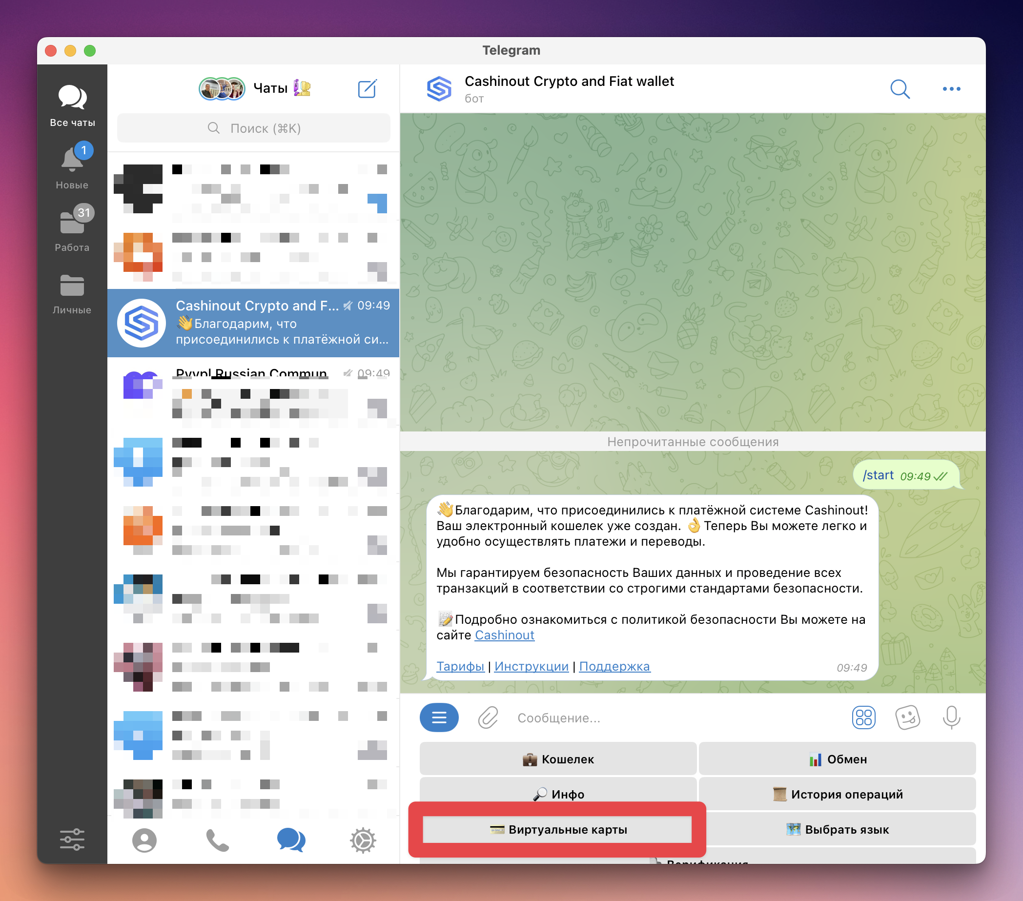 CASHINOUT — Telegram-бот с возможностью хранения криптовалюты и выпуска виртуальных карт для оплаты онлайн-сервисов.