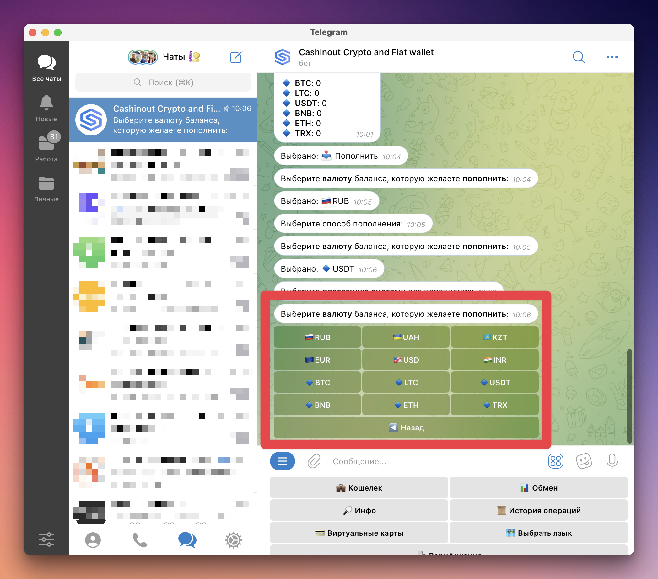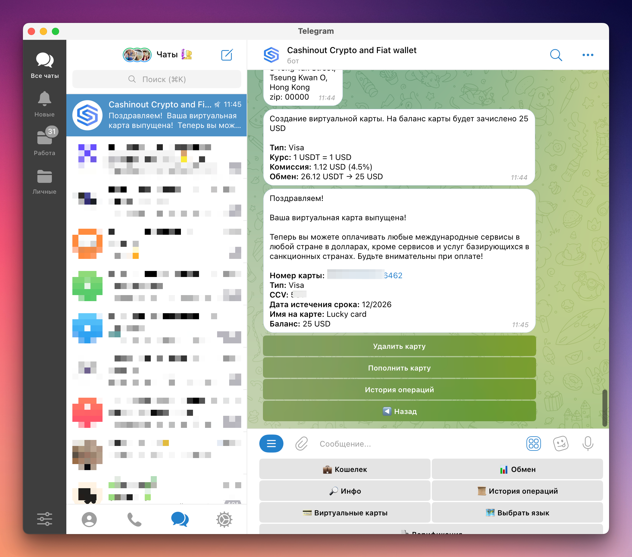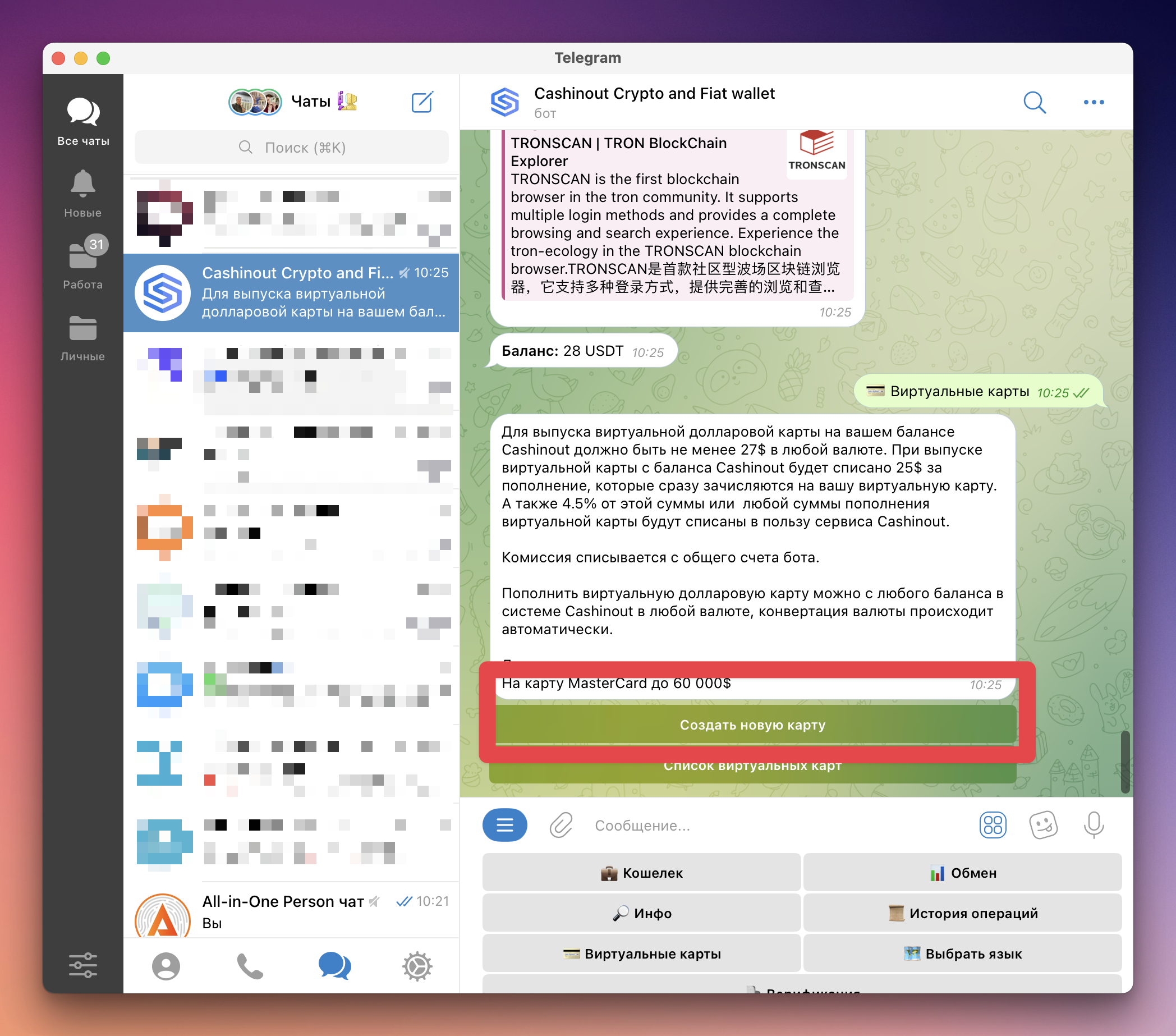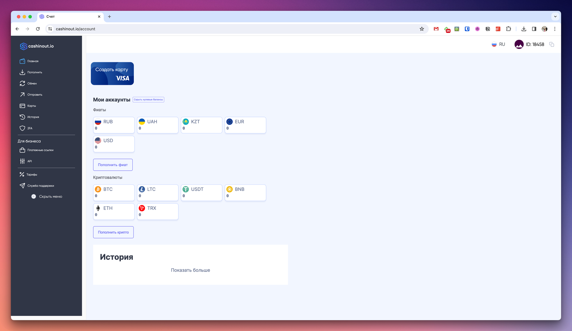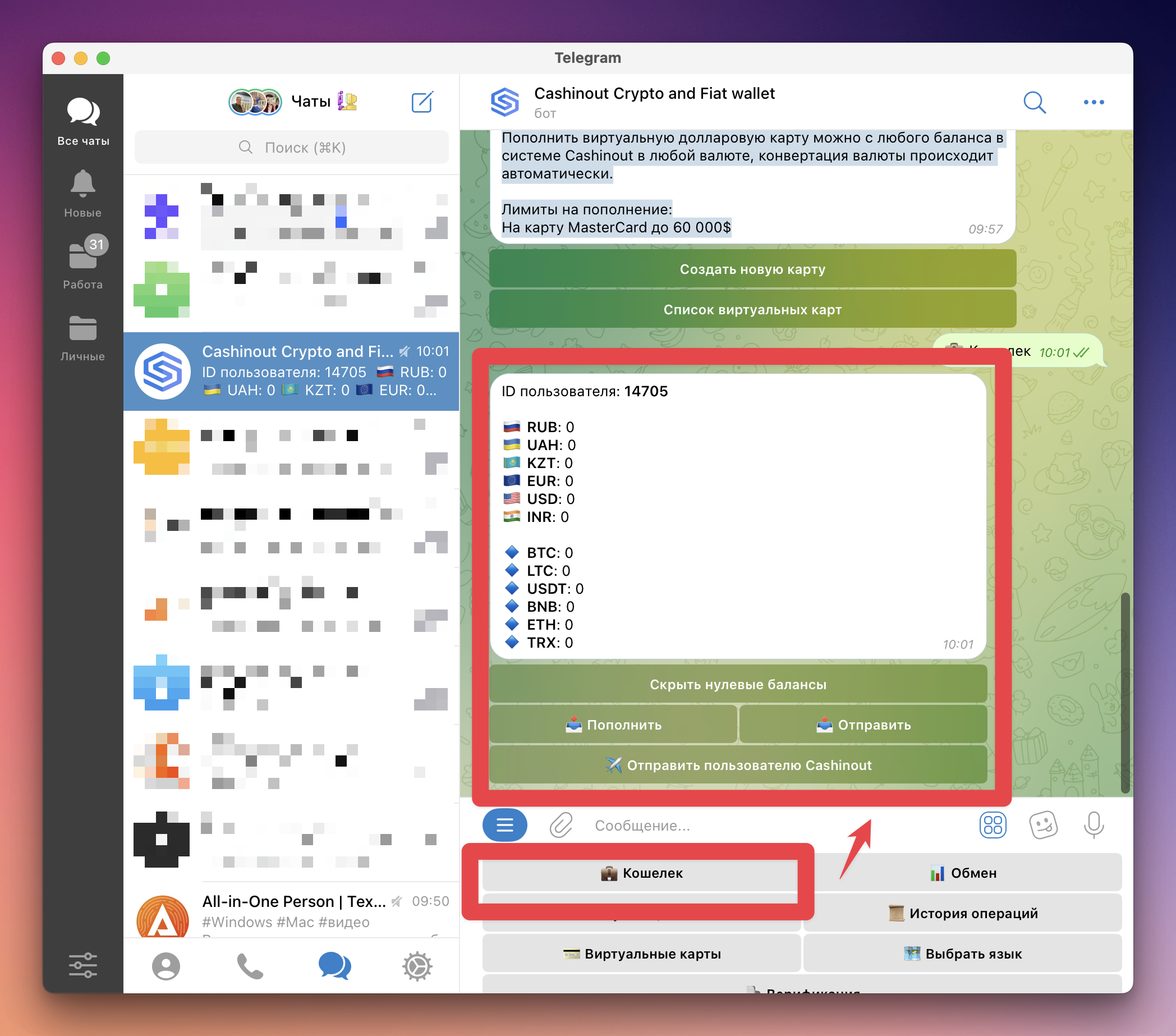 CASHINOUT — Telegram-бот с возможностью хранения криптовалюты и выпуска виртуальных карт для оплаты онлайн-сервисов.