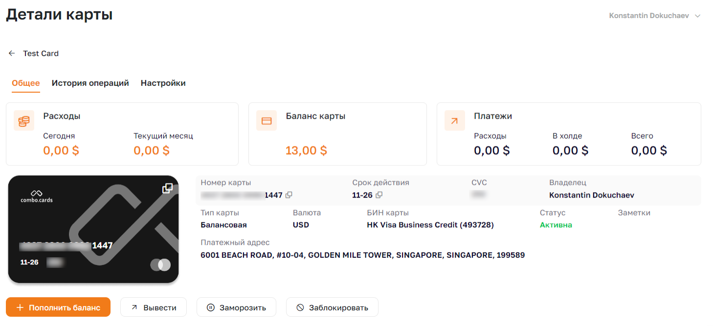 Combo Cards мне понравился возможностью выпустить виртуалку бесплатно и практически с нулевой комиссией. При этом все карты поддерживают 3DS, что увеличивает проходимость карт.