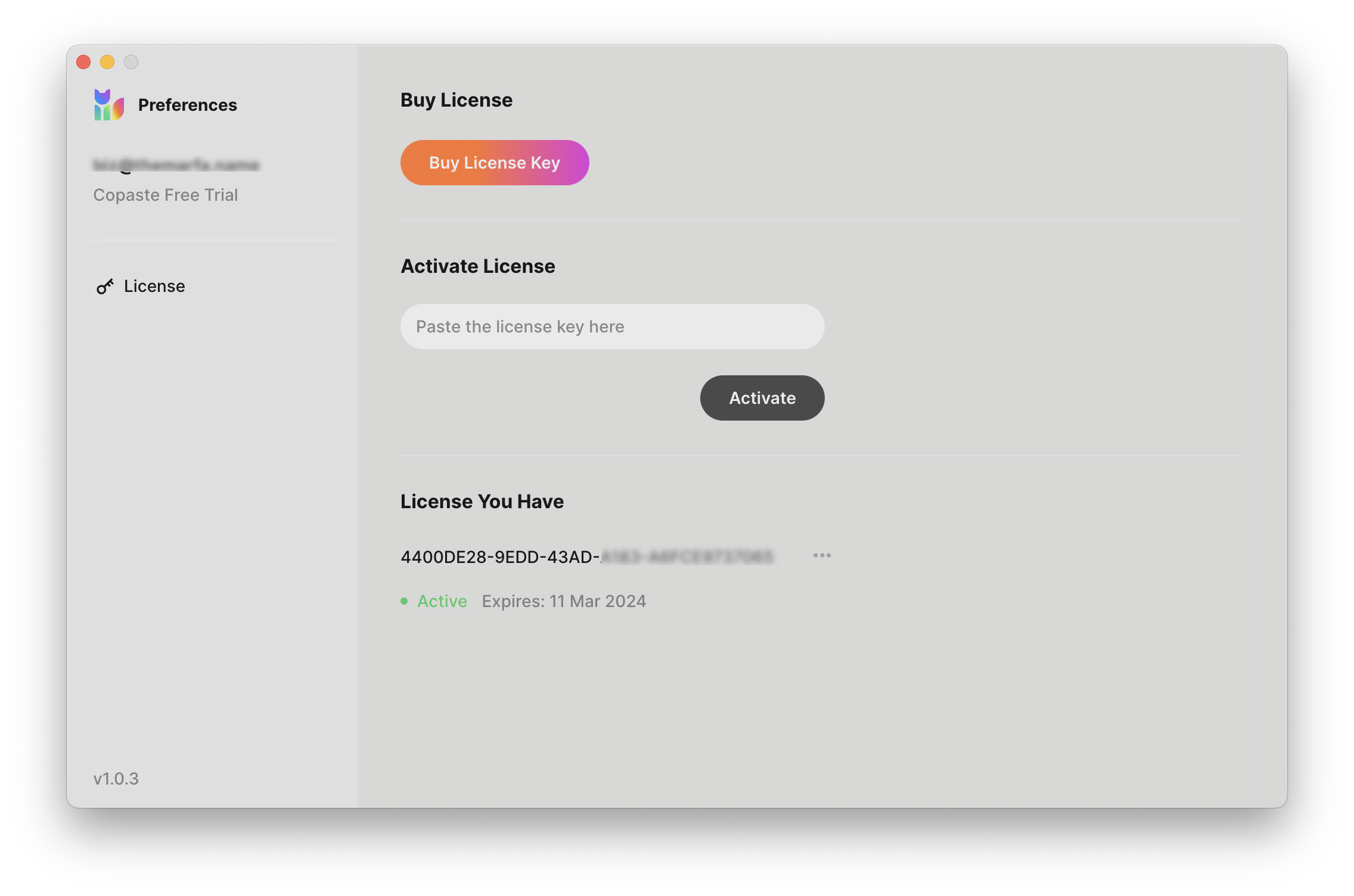 В этот раз я хочу рассказать про простой менеджер буфера под названием Copaste. Приложение настолько минималистичное, что в настройках у вас есть возможность ввести только ключ активации.