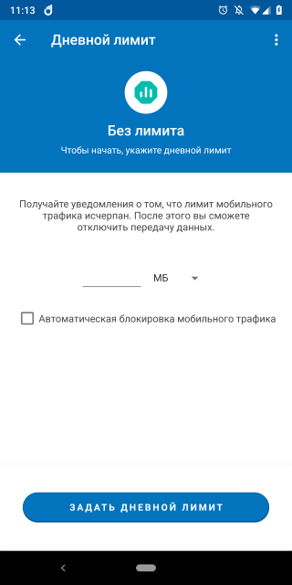 В дневном лимите можно задать лимит трафика на день. При достижении этого лимита автоматически отключается весь мобильный трафик до конца дня.
