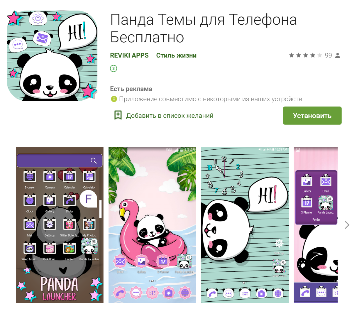 Довольно-таки миленький бесплатный лаунчер с пандой. Внутри есть несколько тем, которые можно менять по предпочтениям. Меняет некоторые дефолтные виджеты под себя (например, часы на главном экране). Есть один большой минус: реклама на каждом шагу выскакивает прямо под пальцами. И тут получается, что мы хотели уберечь себя и ребёнка от лишней информации, а на самом деле только прибавили проблем. Ребёнок точно тапнет по какой-нибудь рекламке. Впрочем, разработчики, наверное, на это и надеются.