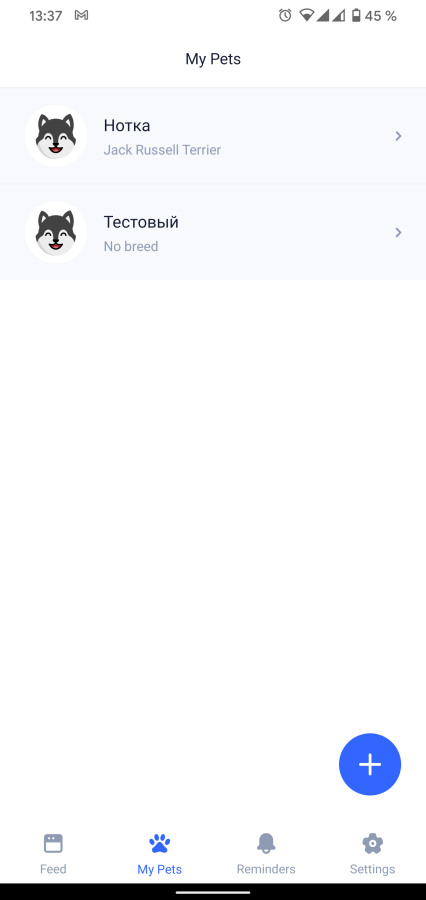 В приложении есть три основные вкладки: Feed, My Pets и Reminders. Начать стоит со второй.