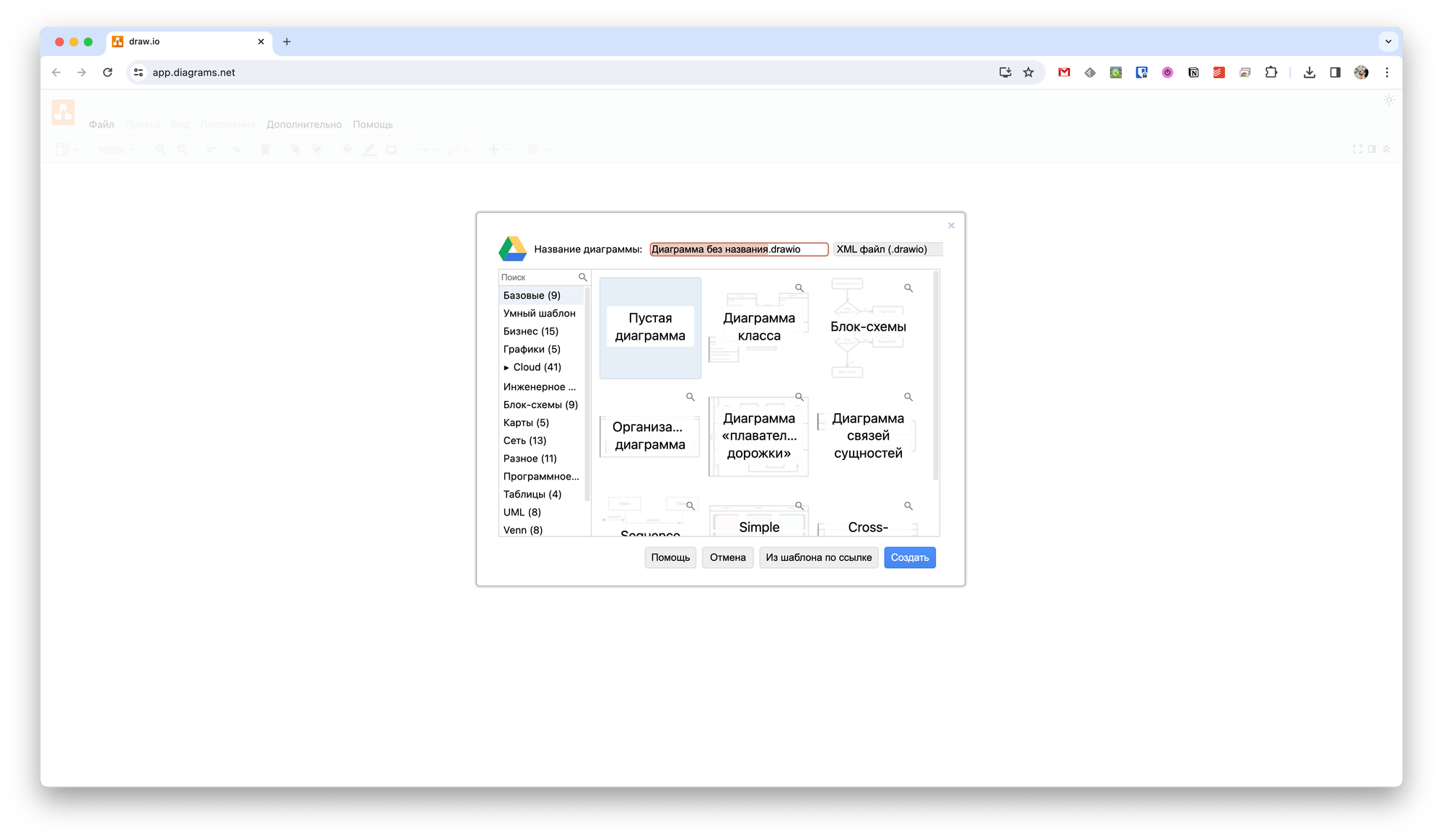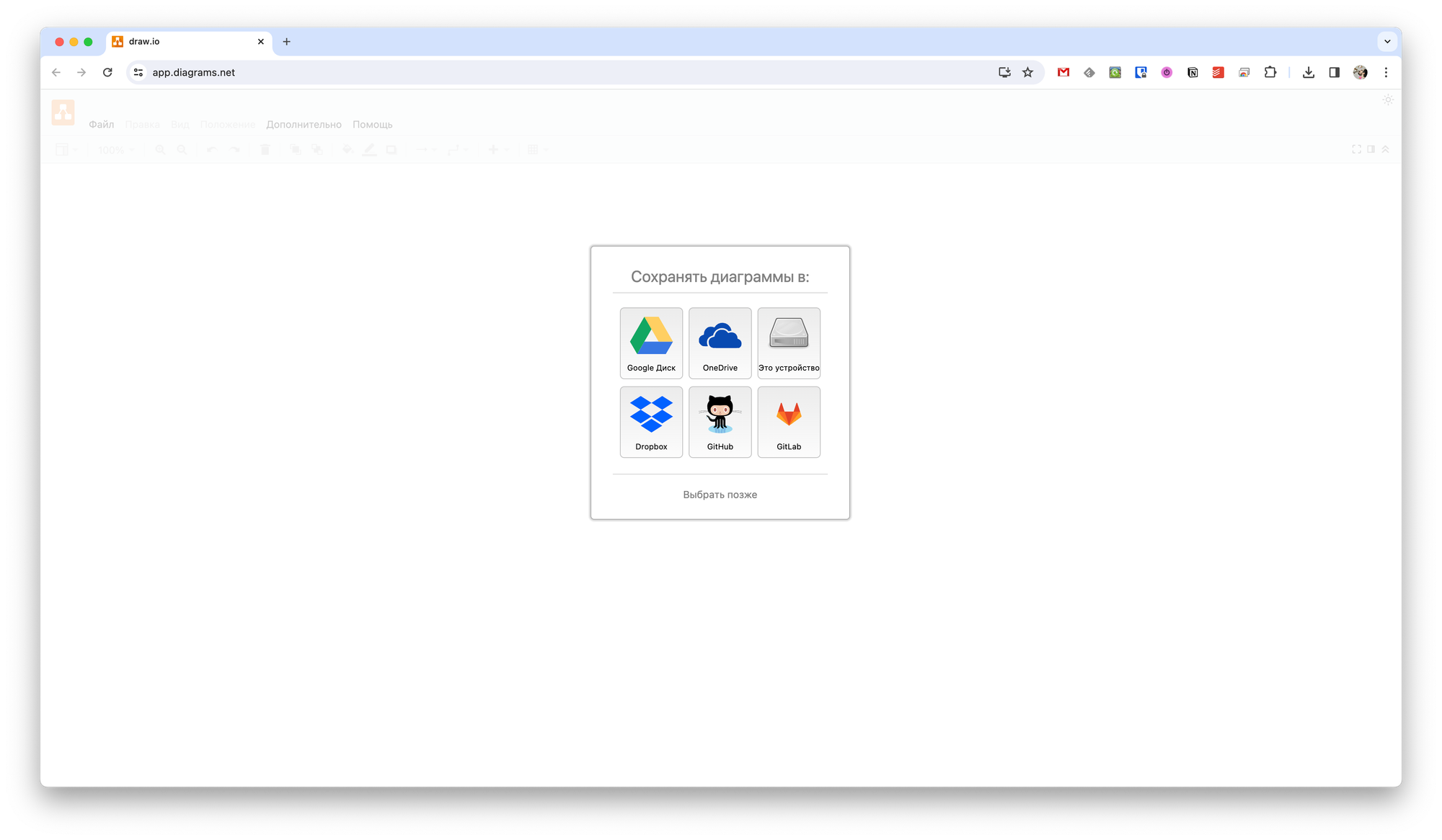 Я всё же расскажу про онлайн-версию, так как для многих это самый популярный вариант взаимодействия с Draw.io.