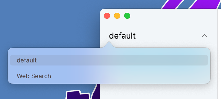 Поддерживается два типа чатов: обычный и поиск в сети. Выбор типа чата происходит через выпадающее меню.