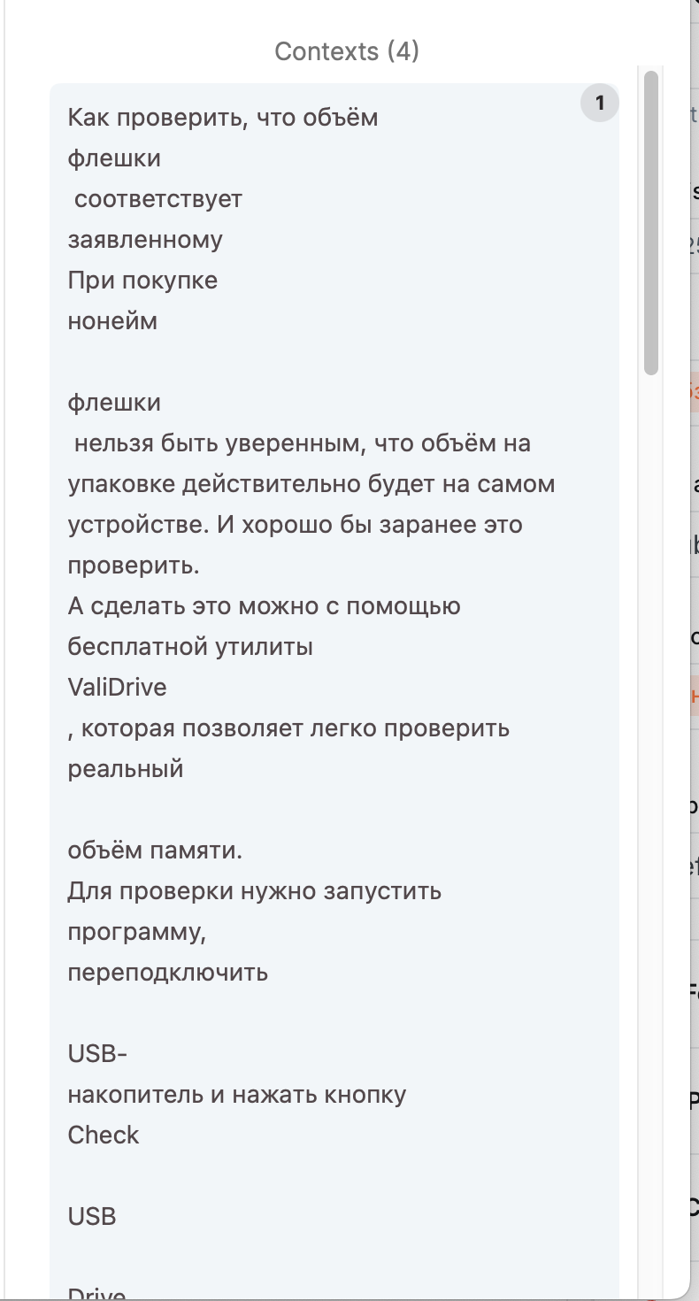 После добавления файла нужно немного подождать его индексации. Если данные появились во вкладке Context, можно начать задавать по нему вопросы.