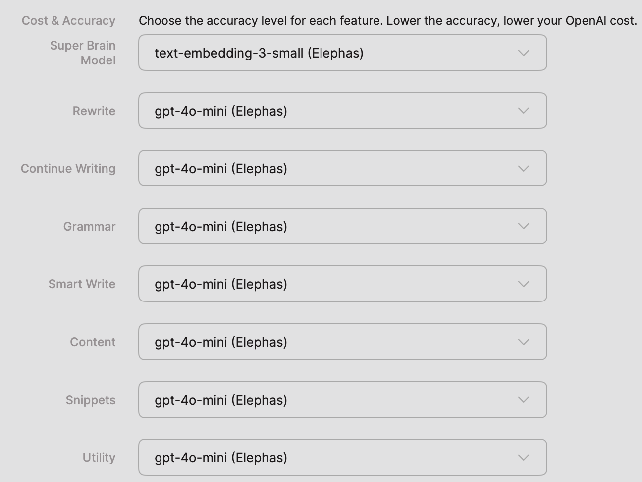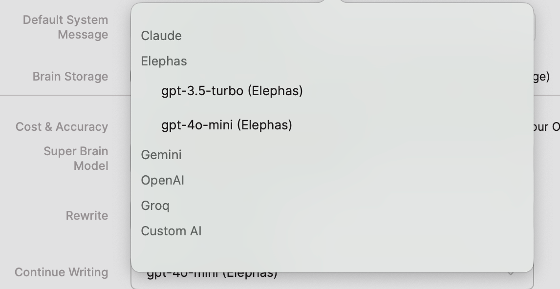 В настройках Elephas можно задать, с какой нейромоделью будет работать приложение. В списке есть популярные зарубежные нейронки, но вы можете загрузить собственную модель.