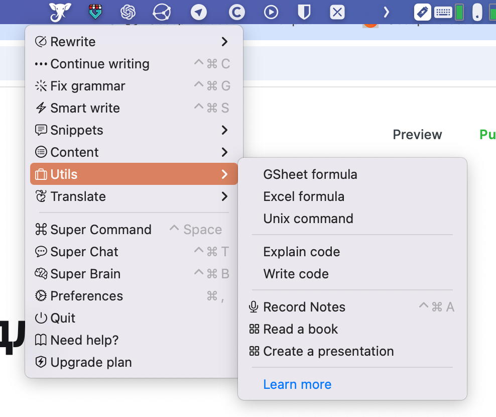 В контекстном меню можно к текущему тексту в буфере обмена применить быстрые действия, типа проверки ошибок, изменения стилистики и тому подобных штук.