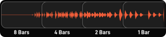 Лупер позволяет записать последние 1, 2, 4 или 8 тактов, которые вы сыграли. Вы можете начинать захват в любой момент времени, а не только в начале или в конце такта.