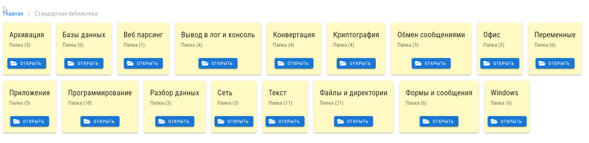 По сути, вы будете работать с различными блоками, объединяя которые, вы можете создать свой уникальный скрипт. При этом скрипты могут вызвать друг друга.